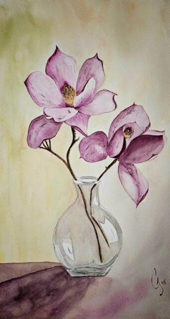Mi nombre es Claudia Montesinos, soy acuarelista autodidacta, pertenezco a la Asociación de Acuarelistas de Chile, manejo técnicas en óleo, acrílico y carbón, pero mi mayor pasión es la acuarela mezclada con carbón y pigmentos naturales, realizados con extractos de miel de abeja.