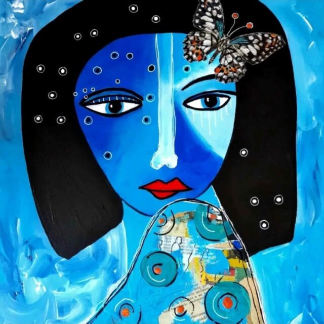 Pinto sobre mi entorno inmediato, sobre mis vivencias y mi imaginación. La mayor parte de mi trabajo, lo hago sin una idea previa determinada (mis bocetos son parte del “ejercicio diario” , que rara vez terminan plasmados en una tela. Disfruto del proceso, porque casi siempre está fuera de mi control. Me doy permiso para no ser perfecta y