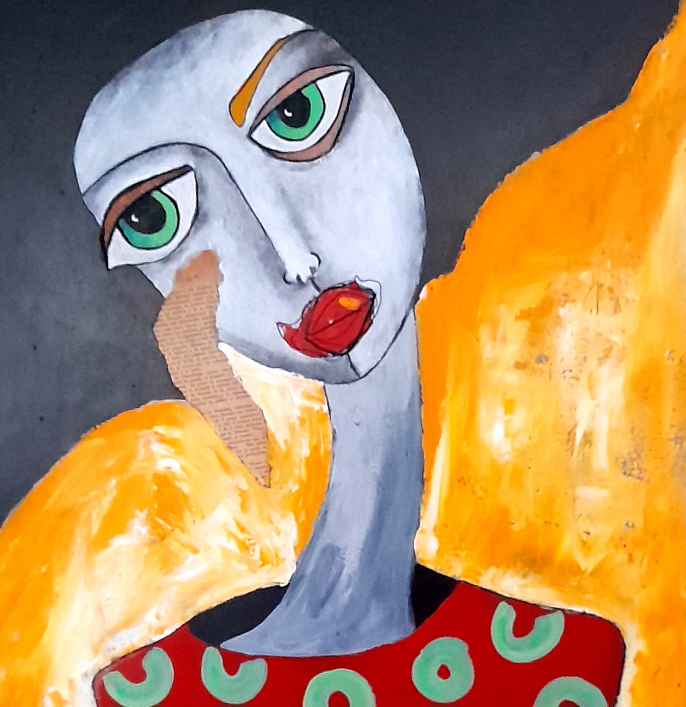 Pinto sobre mi entorno inmediato, sobre mis vivencias y mi imaginación. La mayor parte de mi trabajo, lo hago sin una idea previa determinada (mis bocetos son parte del “ejercicio diario” , que rara vez terminan plasmados en una tela. Disfruto del proceso, porque casi siempre está fuera de mi control. Me doy permiso para no ser perfecta y