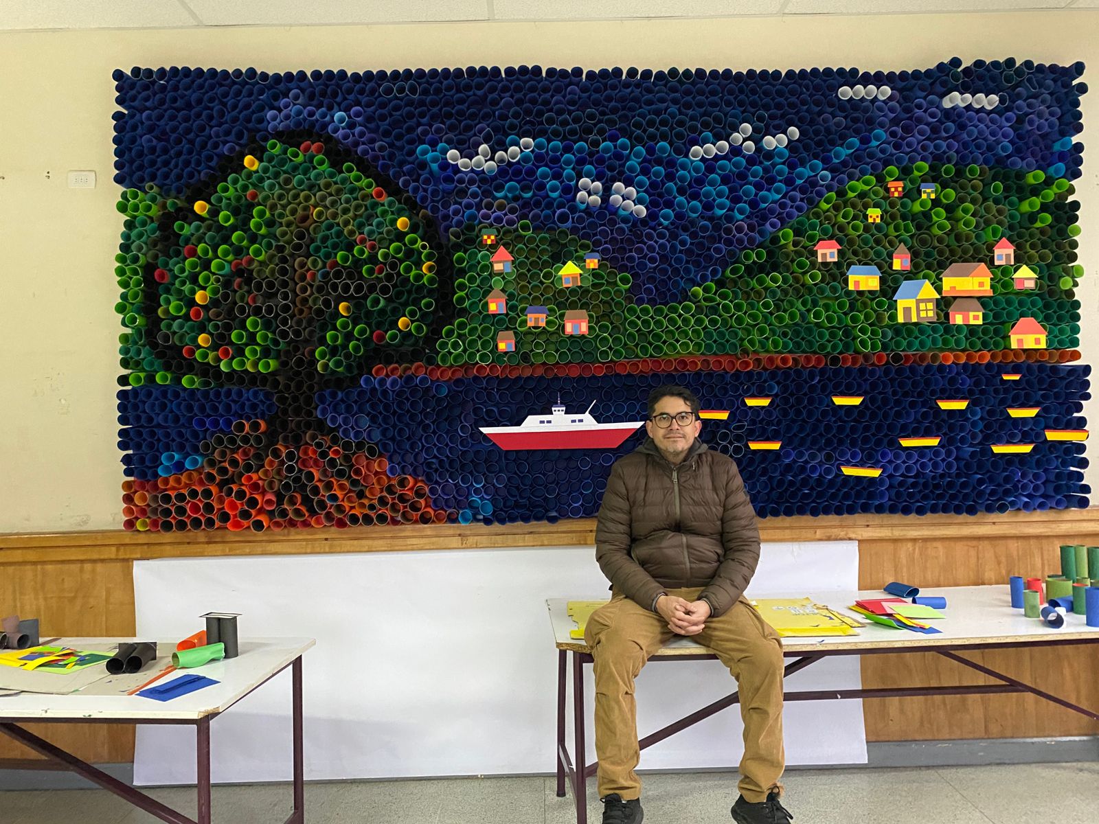 He participado en muestras y exposiciones escolares y comunales, coordinando procesos creativos colectivos que combinan escultura, muralismo y arte objetual, destacando obras como “Tren Tren y Cai Cai Vilú” y “Territorio de Recados”, que ponen en valor los mitos locales y la memoria del territorio.