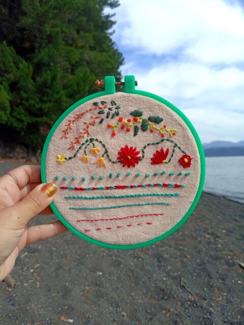 Chile (2007-2011). Mi obra se ha desarrollado desde el Arte Textil, la fotografía, el reciclaje, la memoria y el territorio en el que habito. Propongo reflexiones acerca de la contaminación y conciencia a través de la experimentación con técnicas textiles contemporáneas como el termofundido con plásticos reutilizados y el termofijado sobre telas sintéticas y ha desarrollado una investigación a cerca del teñido con tintes naturales y plantas de la zona de Mallolafken, además de experimentaciones con óxidos y tierras de colores sobre papel y tela a través de libros textiles.