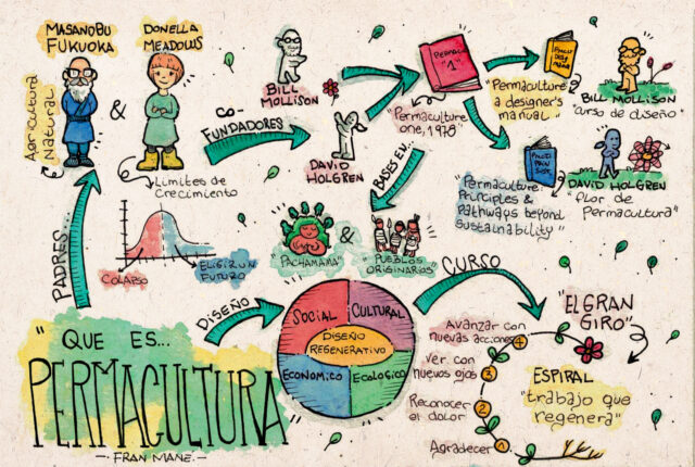 En 2020, facilitó gráficamente el curso de permacultura de El Manzano, culminando con un manual ilustrado en técnica acuarela que reúne la cosecha gráfica del proceso formativo.