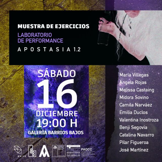 He participado en muestras colectivas en espacios como Galería Barrios Bajos, la Municipalidad de Valdivia y Departamento JOTA (Santiago), además de realizar performances personales y colaborativas en distintos espacios públicos. Como cierre del PRFDE presenté la instalación performativa Efectos Secundarios en Artistas del Acero (Concepción), instancia que consolidó mi interés por cruzar cuerpo, palabra y diseño escénico. Paralelamente, he participado en lecturas colectivas de poesía y he publicado en fanzines independientes.