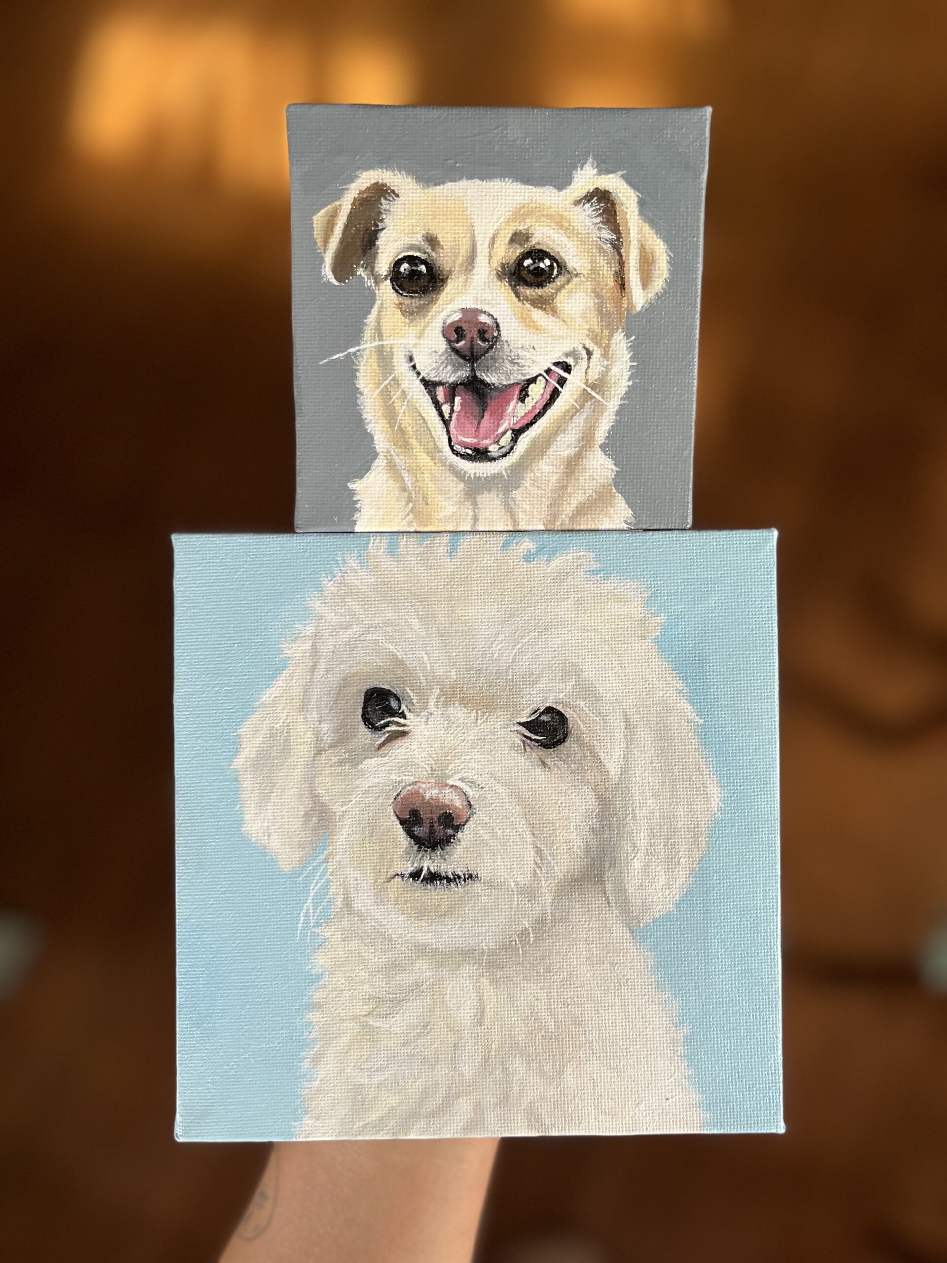 Soy artista visual autodidacta y creadora independiente radicada en la Región de Los Ríos. A través de mi proyecto creativo desarrollo y ofrezco retratos en acrílico y grafito, tanto de personas como de mascotas, además de cuadros y piezas de arte botánico realizados mediante prensado floral.