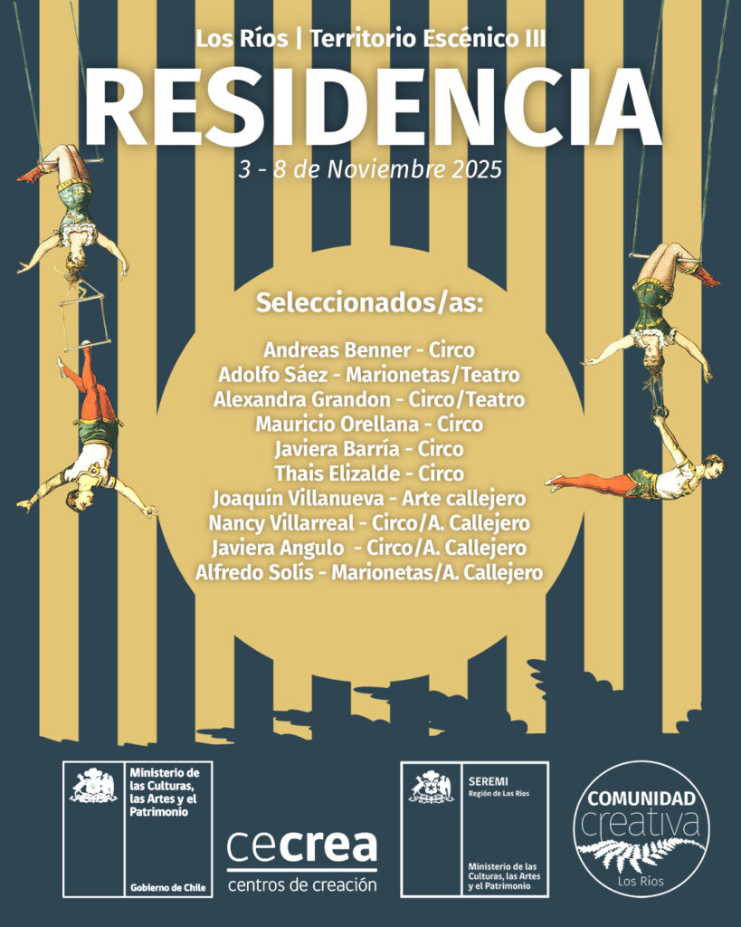 El programa Territorio Escénico Fase 3 de la Seremi de las Culturas, las Artes y el Patrimonio de Los Ríos invita al sector de las artes circenses a participar de una nueva versión de la residencia de creación e investigación artística con foco en las Artes Circenses bajo el tópico “Memorias Nómades”.