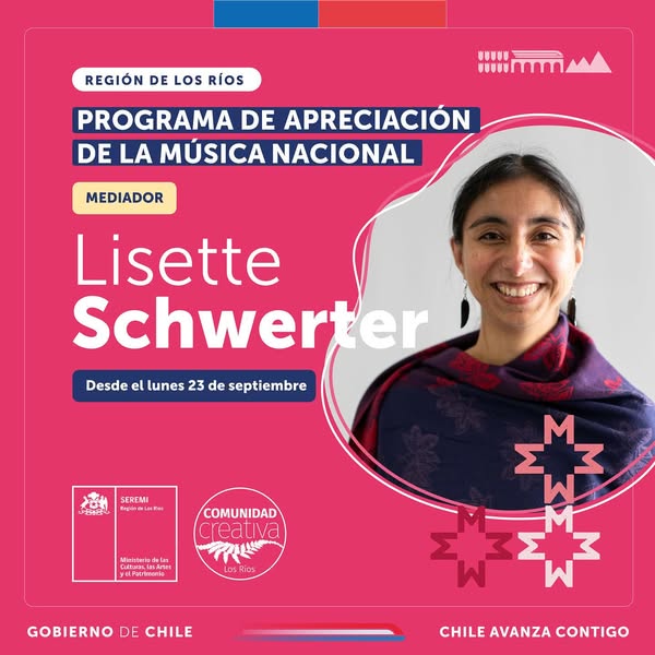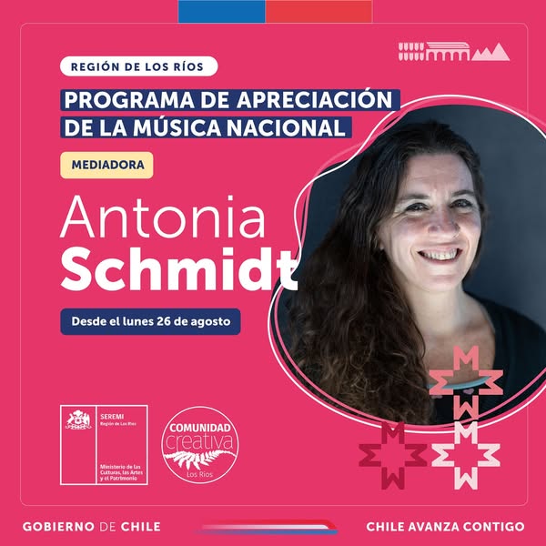 El proceso de mediación estuvo a cargo de Antonia Schmidt, Profesora de Educación musical (bilingüe), compositora de música infantil con 5 producciones a su haber, Directora de la agrupación musical valdiviana “Lavandita” (@lavanditamusica ), Profesora de Alta Uach, Capacitadora, Locutora, Nominada Premios Pulsar 2019 Categoría Mejor artista de música para la infancia, Premio Alumni Unab «Arte y Cultura» 2017 y Directora de la agrupación Musical «Baobab» (2010-2020)