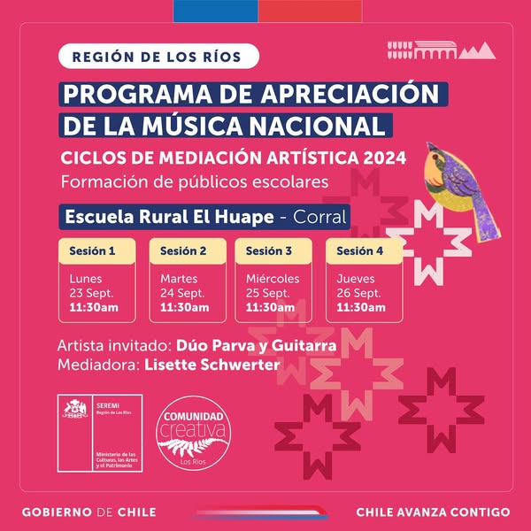 Estamos felices de comenzar con nuestra versión 2024 del Programa de Apreciación Musical (PAM) Los Ríos! Iniciativa que tiene como fin el desarrollo y formación de nuevos públicos de la música nacional, con foco en niños y niñas de la región.