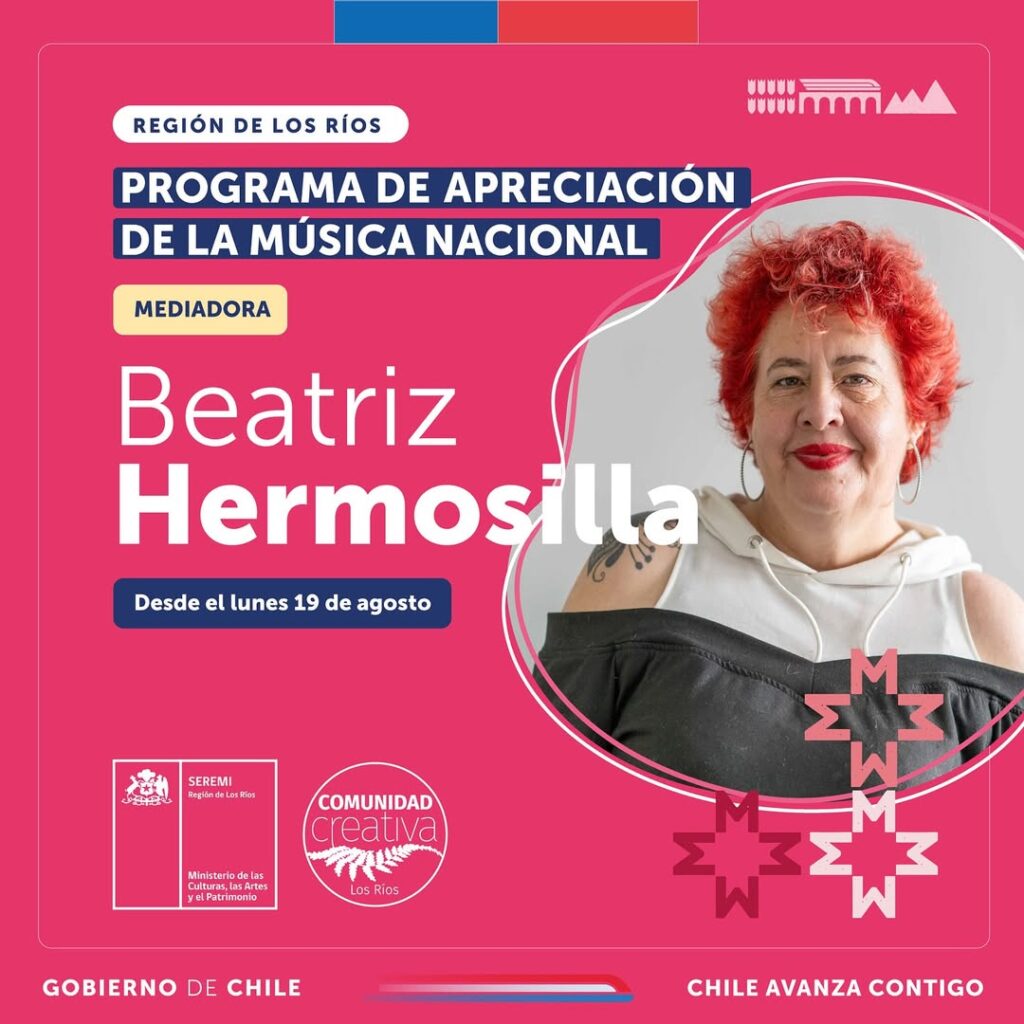 ✨🤗 Esta banda fue mediada por Beatriz Hermosilla, cantante y gestora cultural con más de 35 años de trayectoria. Fundadora y dirigente de la Agrupaciòn de Músicos Santa Cecilia, una de las organizaciones más antiguas del país en su tipo y que continúa vigente. Es además impulsora junto a otras artistas regionales de la Formación de la Asamblea autoconvocada deTrabajadoras de la Música.