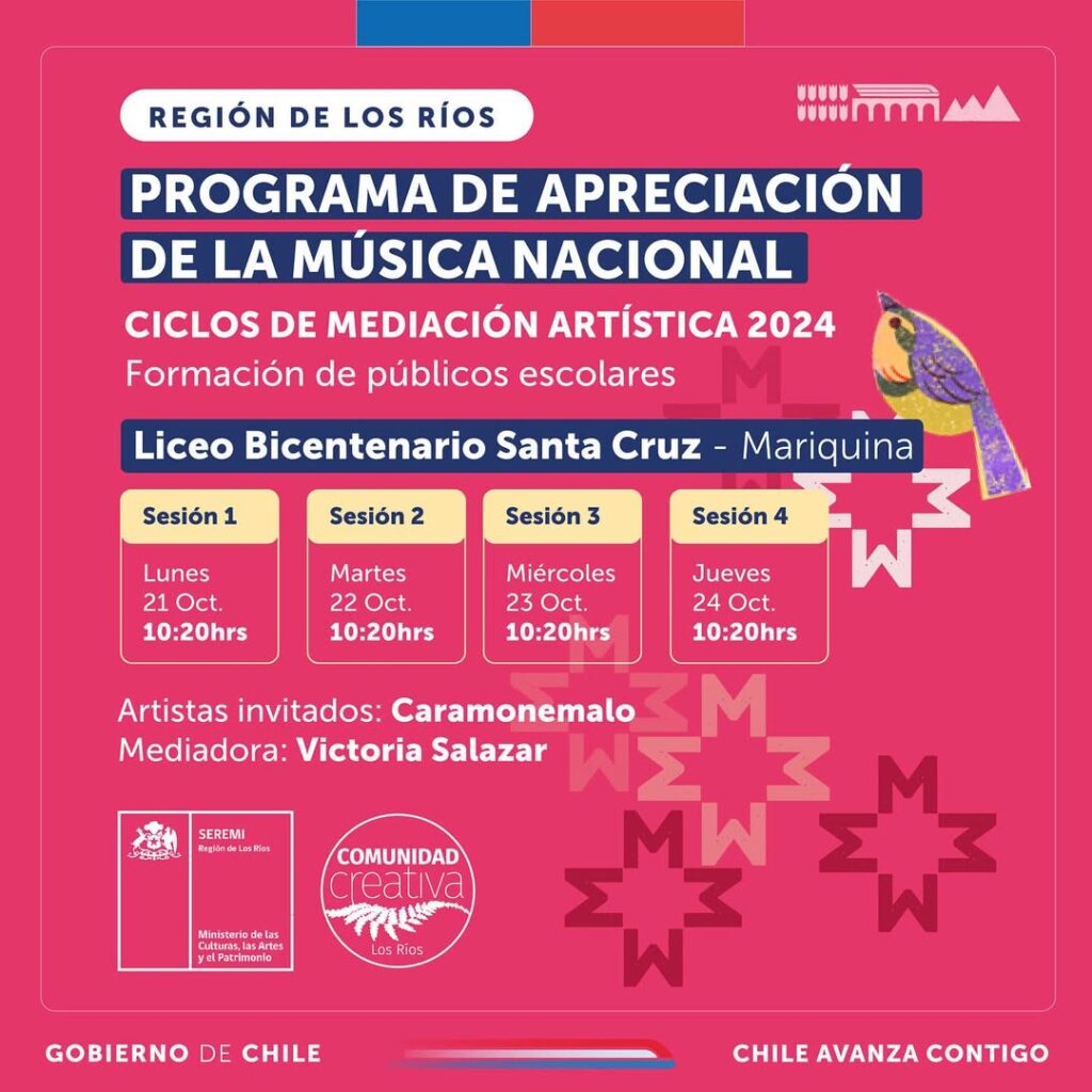 🙌🏽 Este Ciclo se llevó a cabo en el Liceo Bicentenario Santa Cruz de Mariquina que buscó establecer un diálogo entre exponentes del ámbito musical regional y el público infanto juvenil, promoviendo una comprensión más profunda de las propuestas musicales de bandas y solistas de Los Ríos.