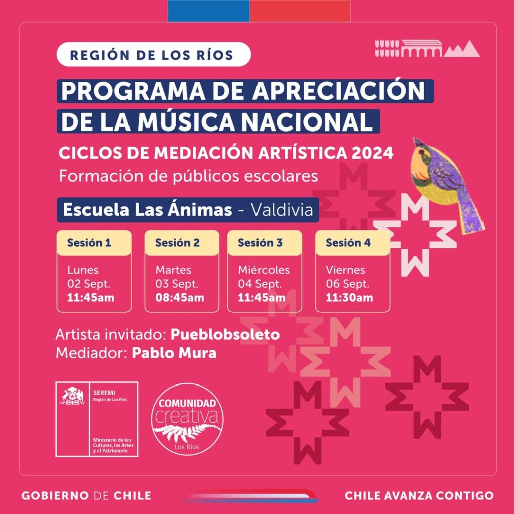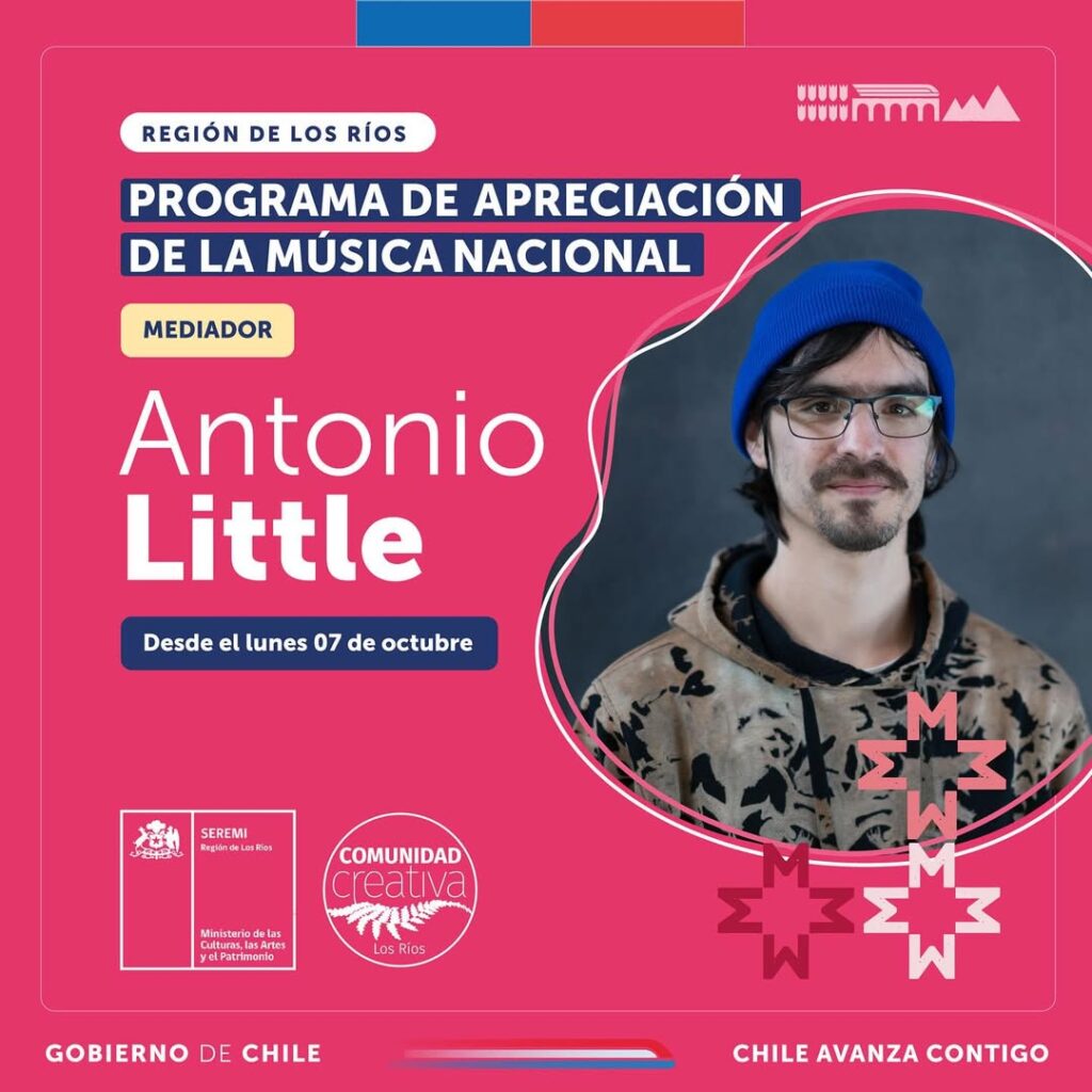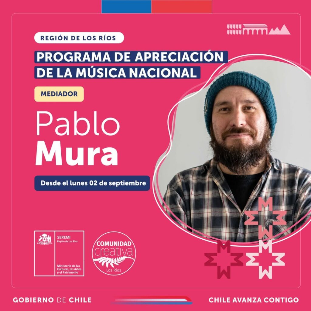 🙌🏽 El mediador de este ciclo fue el destacado músico y compositor valdiviano Pablo Mura, músico popular y gestor cultural miembro de connotadas bandas como Fuma&Baila, Malicia y Peregrino.