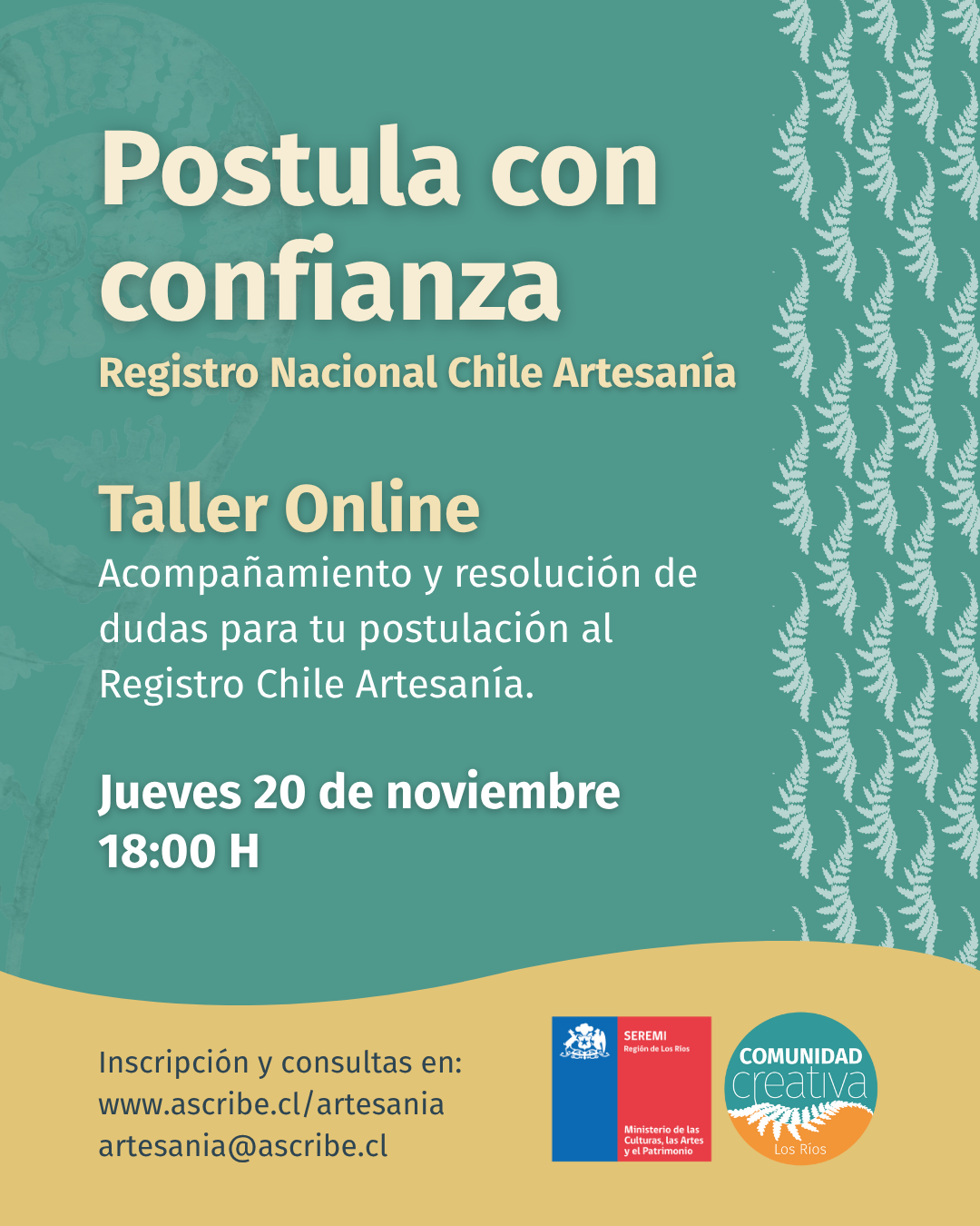 📩 Más info: helen.urra@cultura.gob.cl (copia a artesania@ascribe.cl)