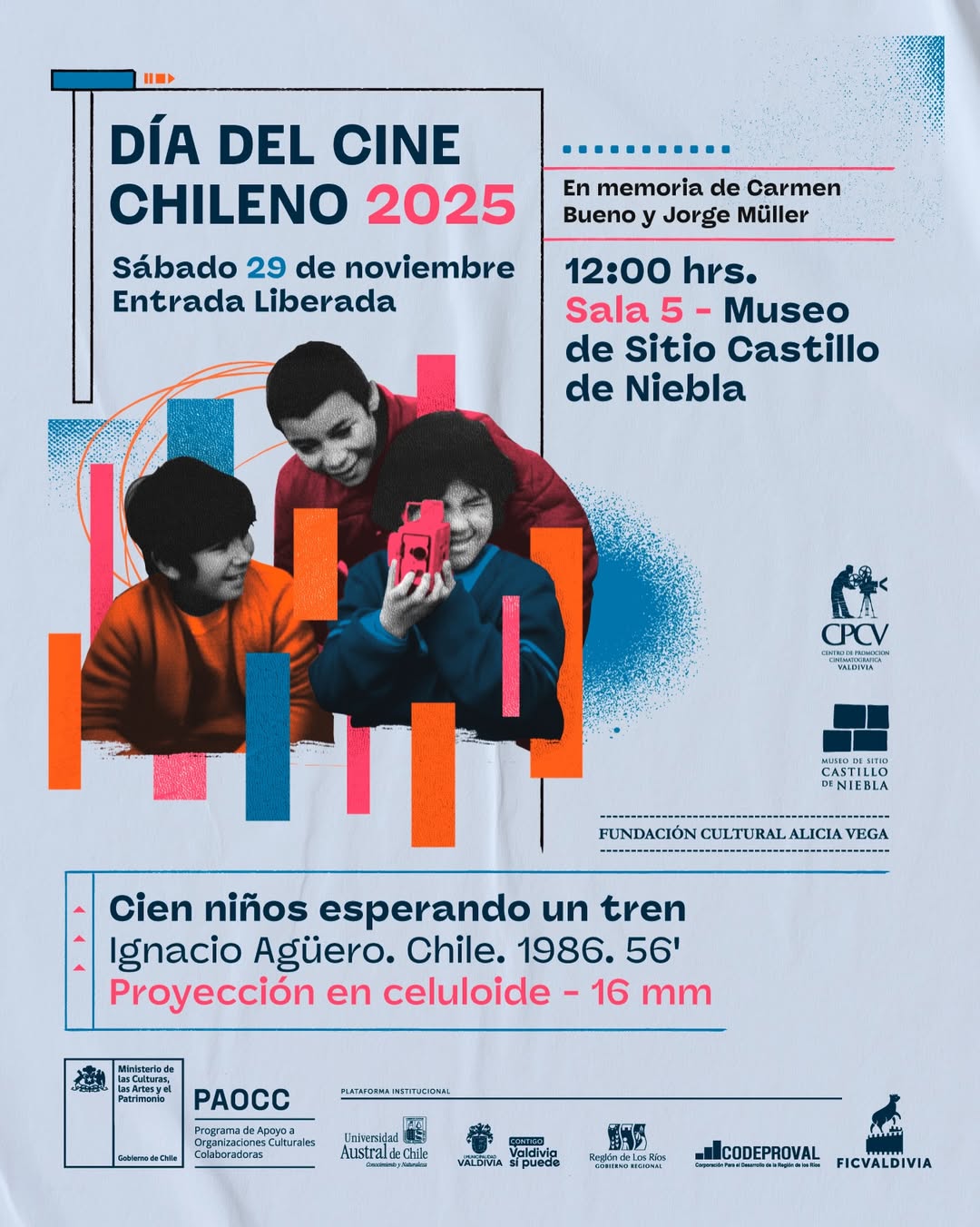 Este sábado 29 de noviembre a las 12:00 hrs, el CPCV (@cpcv_valdivia), el Museo de Sitio Castillo de Niebla (@castillodeniebla) y la Fundación Alicia Vega (@fundacionaliciavega) presentarán Cien niños esperando un tren (1988), de Ignacio Agüero, con entrada liberada. La función se exhibirá en su formato original de 16 mm, recuperando una experiencia cinematográfica histórica.