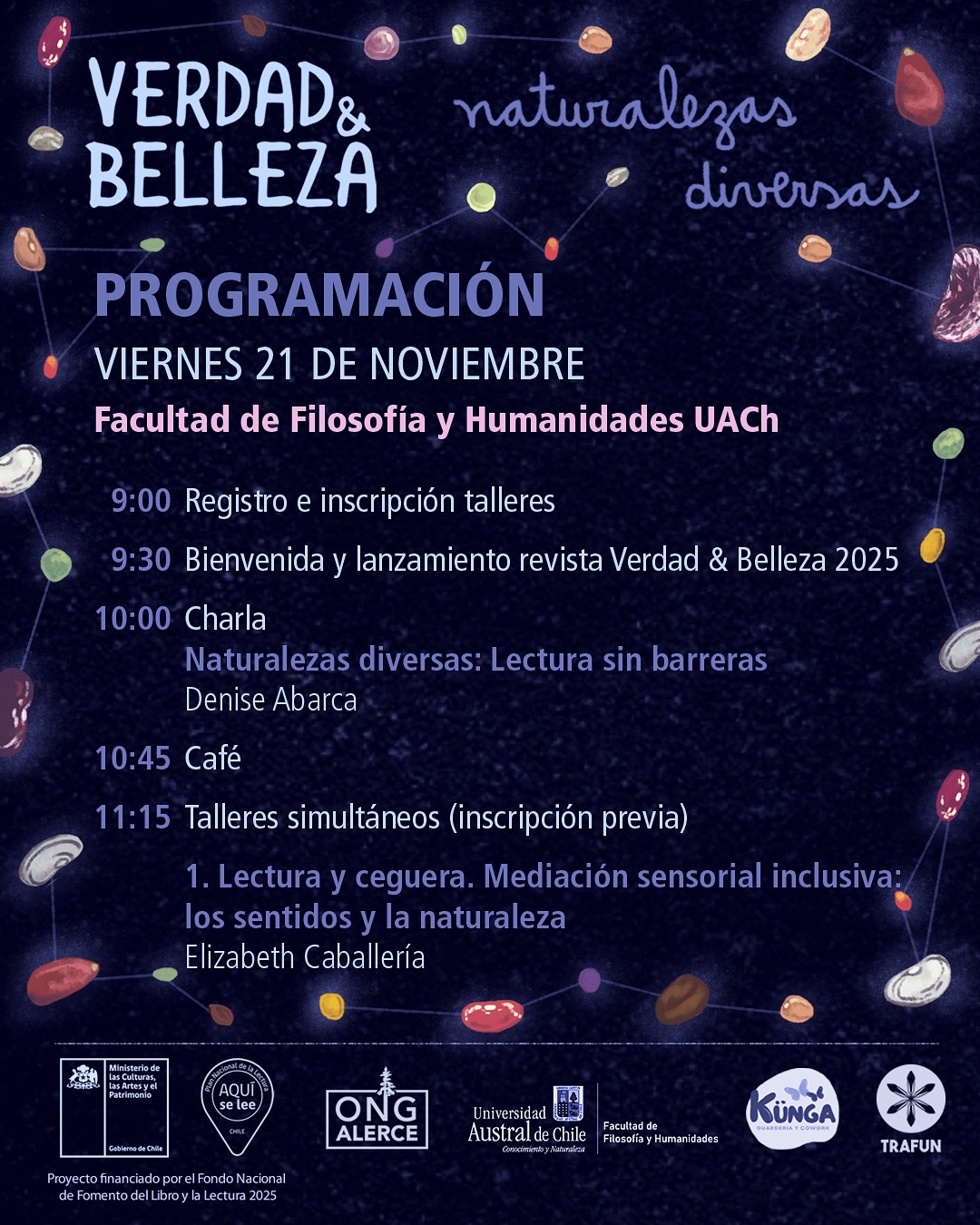 “Verdad & Belleza: naturalezas diversas” es un proyecto de ONG Alerce, financiado por el Fondo Nacional de Fomento del Libro y la Lectura 2025. Agradecemos a @humanidades_uach y a Espacio Künga por su apoyo ❤️.