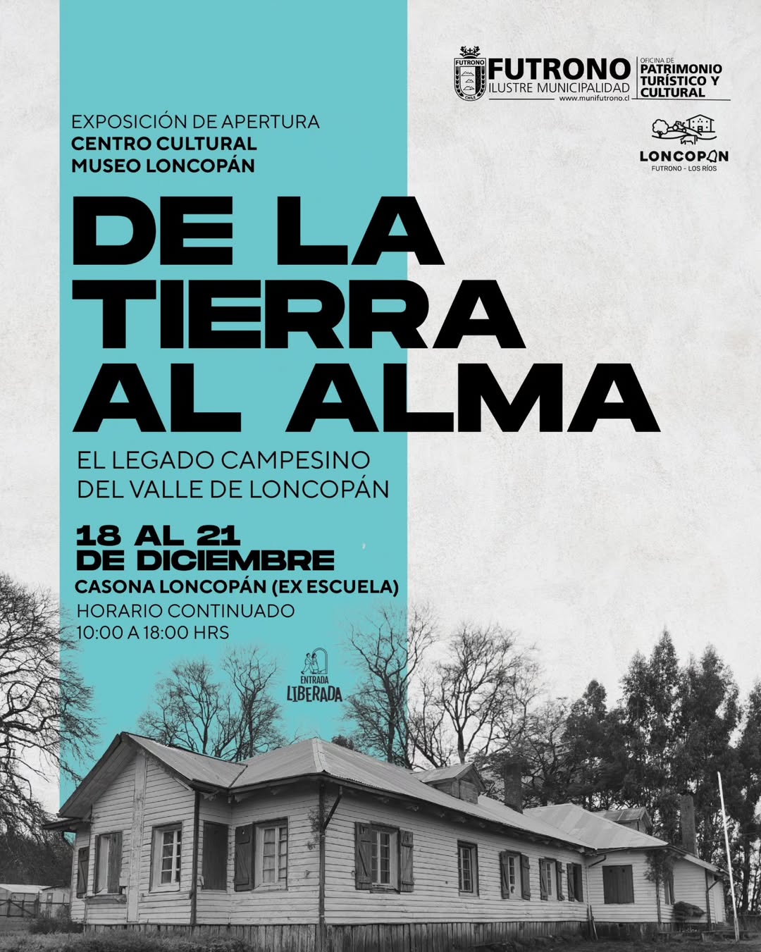 Este 18 de diciembre abrimos las puertas del Centro Cultural Museo Loncopán con la exposición “De la Tierra al Alma: El legado campesino del Valle de Loncopán”, una muestra que conecta nuestras raíces, emociones y memorias comunitarias.