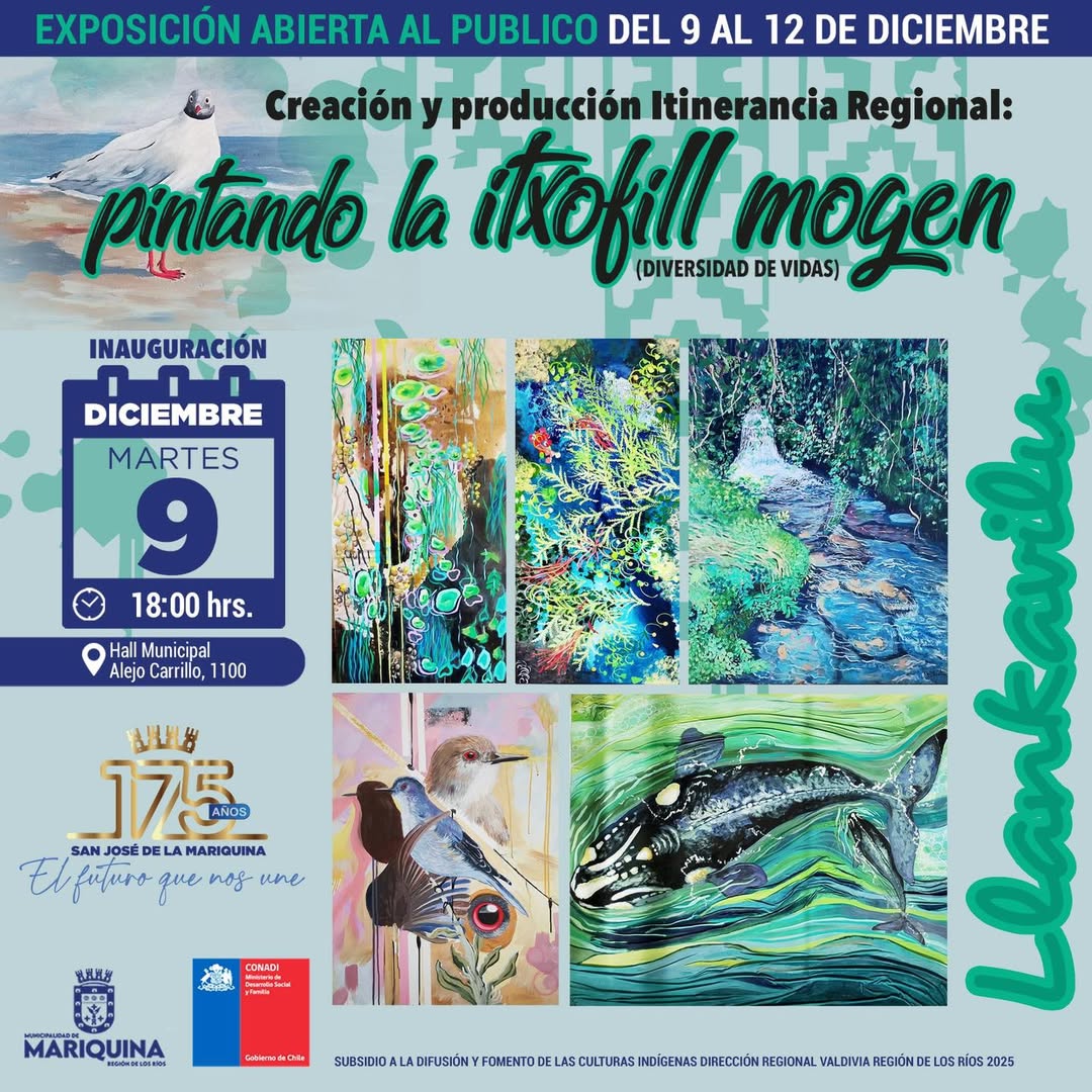 Te invitamos a participar de la exposición del proyecto titulado, “Creación y Producción de Itinerancia Regional: Pintando la Itxofill Mogen (diversidad de vidas)” de la Artista visual, María Llancafil Campos 👩🏻🎨🤩