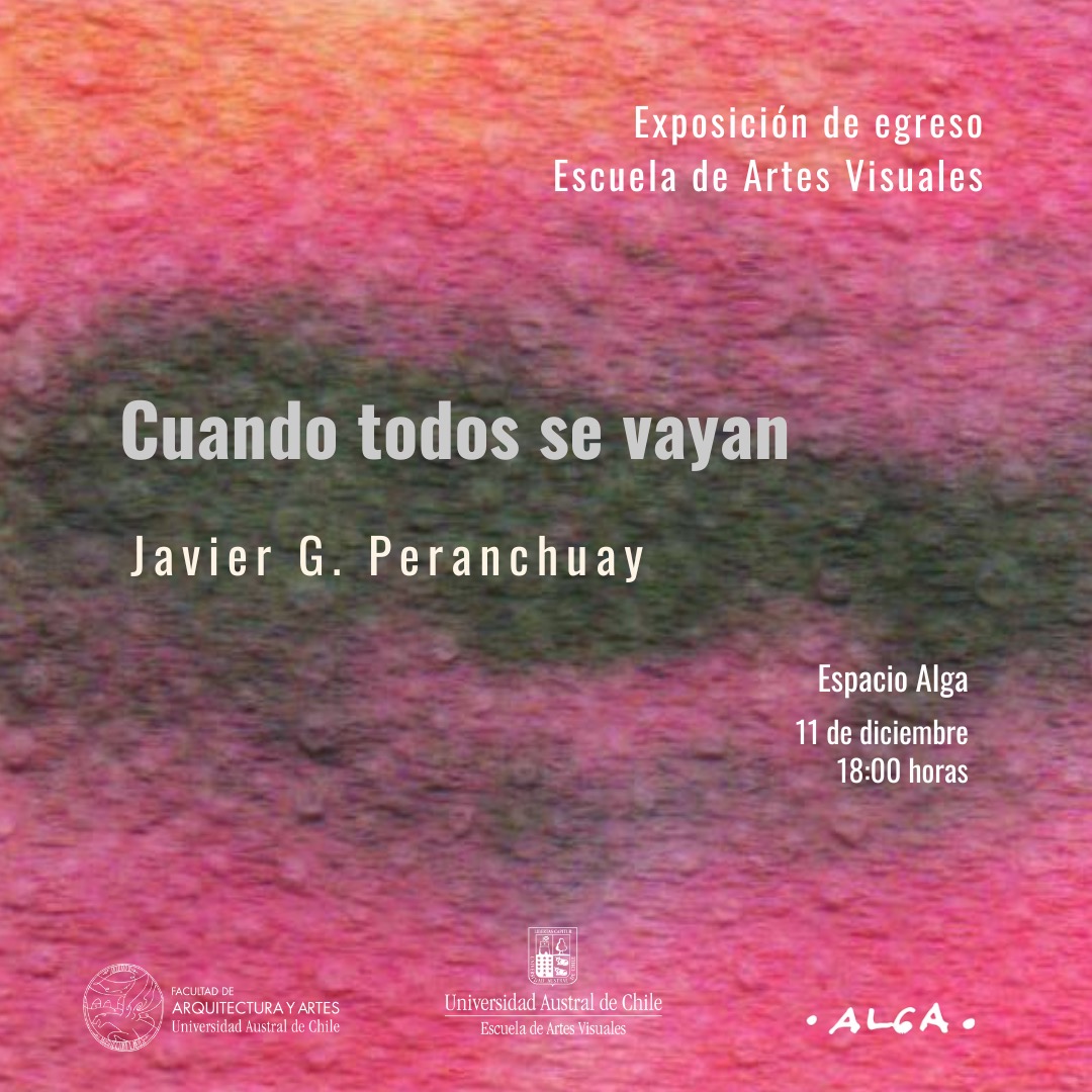 Mañana jueves 11 de diciembre a las 18:00 continúa el programa de Exposiciones de Egreso de Estudiantes de @artesvisualesuach, con la inauguración de “Cuando todos se vayan” de Javier G. Peranchuay @arte_en_breve en @algaestudio