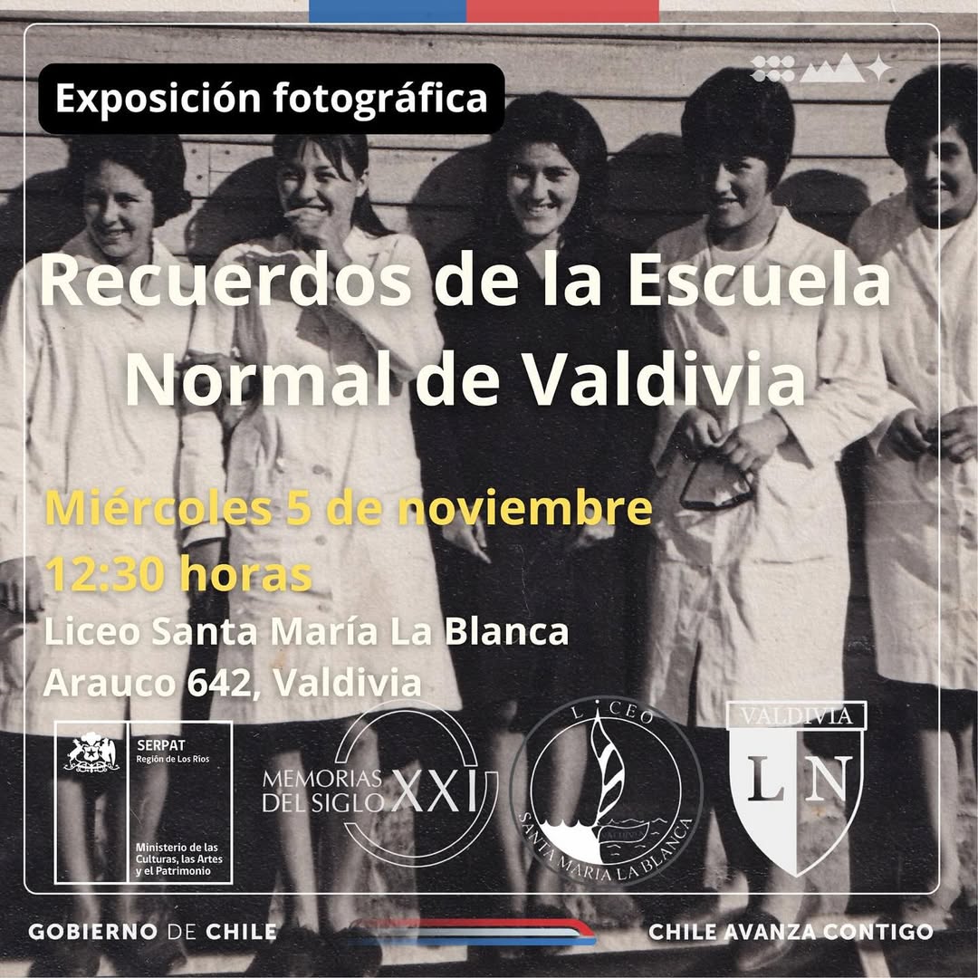 Este miércoles 5 de noviembre a las 12:30 horas, se inaugurará en el Liceo Santa María La Blanca (Arauco 642, Valdivia) una exposición que invita a viajar en el tiempo a través de las memorias de quienes fueron parte de la Escuela Normal de Valdivia, una institución clave en la formación de maestras y maestros en nuestro país 👩🏫📚