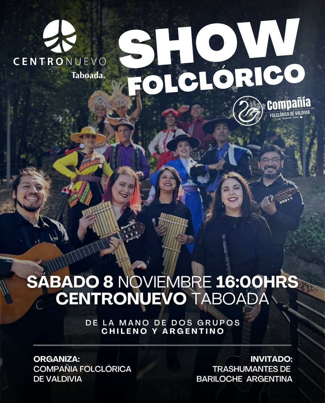 🇨🇱✨ Vive una tarde llena de tradición, música y danza en CENTRONUEVO Taboada. Este sábado 8 de noviembre a las 16:00 hrs, disfruta del Show Folclórico junto a la Compañía Folclórica de Valdivia y los invitados especiales Trashumantes de Bariloche, Argentina 🇦🇷. Una experiencia única que une culturas y celebra nuestras raíces a través del […]