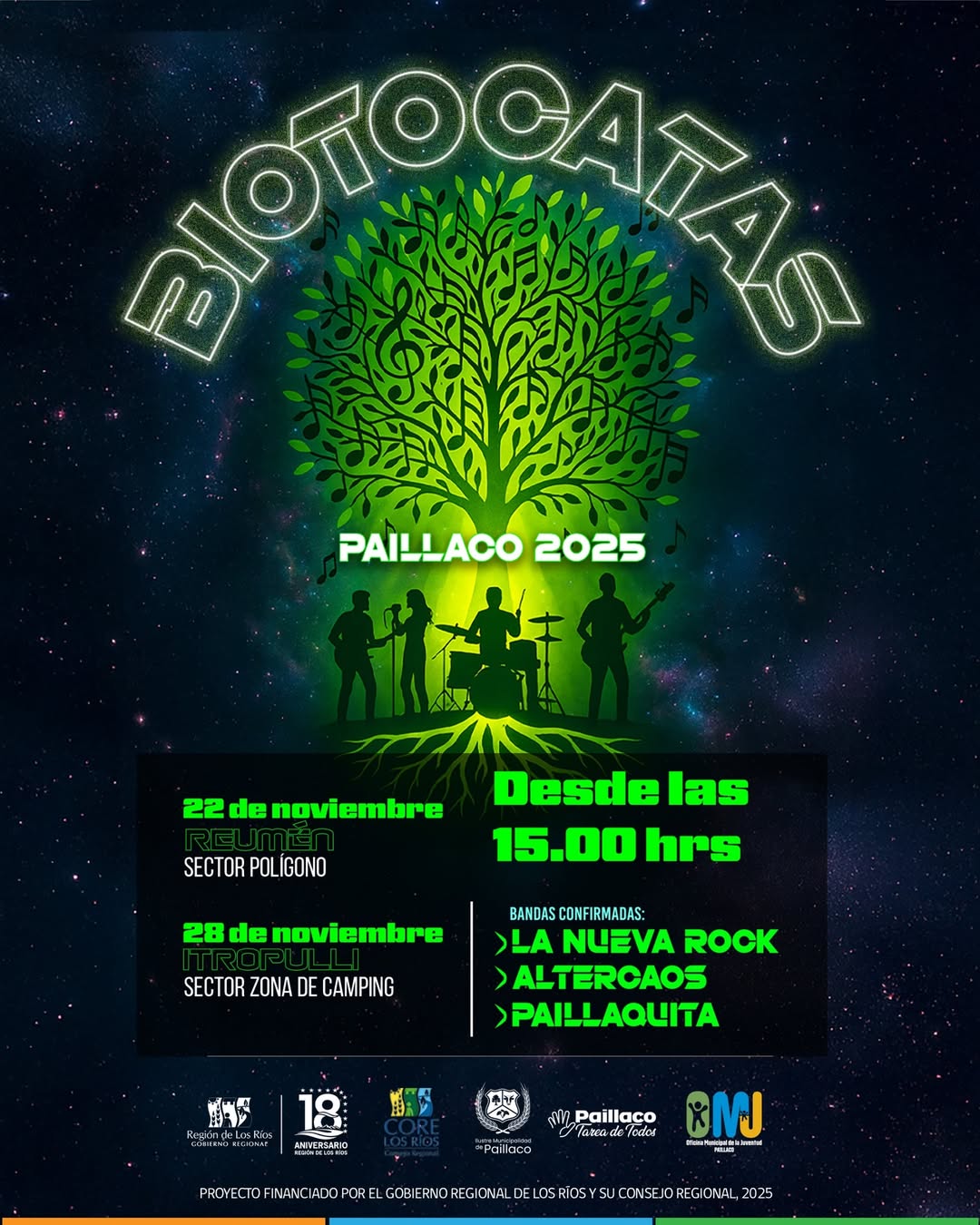 🌳 𝗖𝗼𝗺𝗶𝗲𝗻𝘇𝗮𝗻 𝗹𝗮𝘀 𝗕𝗜𝗢𝗧𝗢𝗖𝗔𝗧𝗔𝗦 𝗲𝗻 𝗣𝗮𝗶𝗹𝗹𝗮𝗰𝗼 𝟮𝟬𝟮𝟱 🎶 La música y el medioambiente se unen en una gran jornada que busca cuidar nuestro entorno y disfrutar de las bandas locales. Este sábado 22 de noviembre, desde las 15:00 horas en el Sector Polígono de Reumén 📍, se vivirá la segunda fecha con la participación de […]