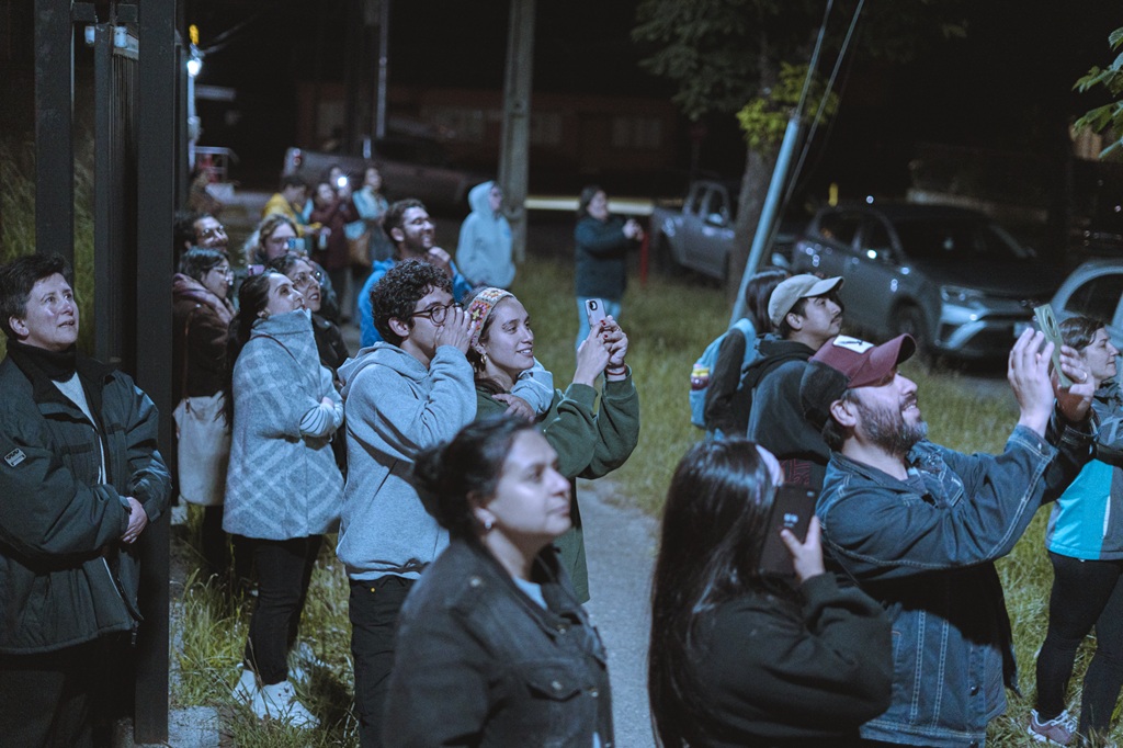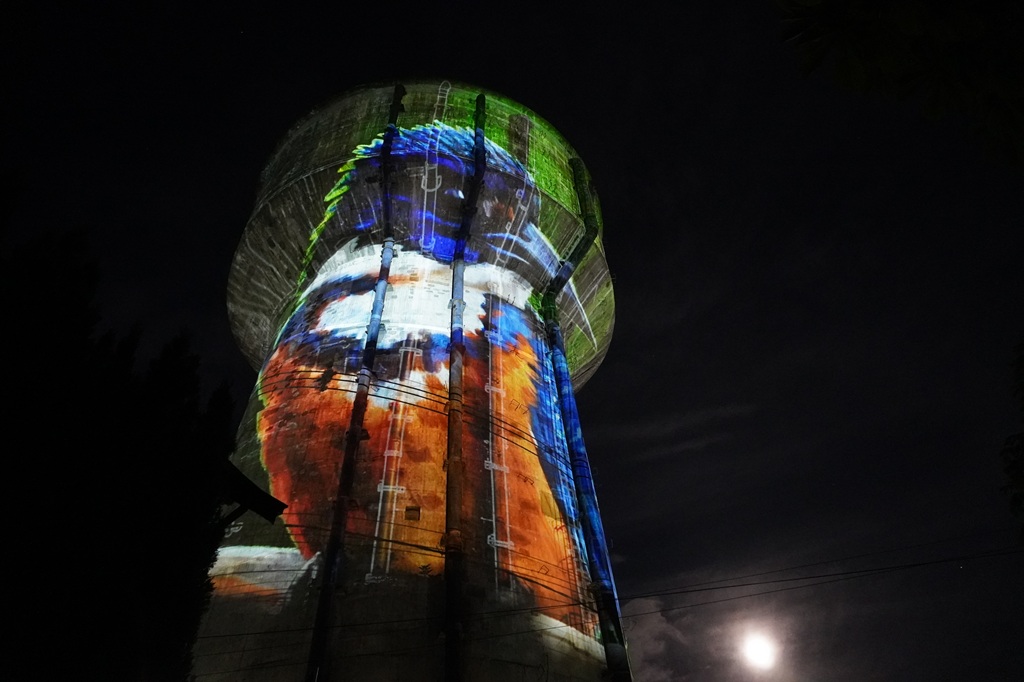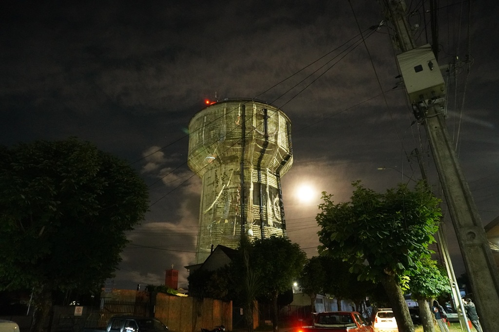 Al anochecer la jornada continuó con la obra realizada por Kaio Art en colaboración con GEM Studio Lab, que transformó este ícono de la ciudad en un cuerpo vivo de luz y movimiento, proyectando un relato visual inspirado en la geografía hídrica del territorio, espectáculo que fue seguido por el público que llegó hasta donde se ubica la estructura de hormigón de casi 60 metros de altura y que invitó a reflexionar sobre las relaciones ecosistémicas que sostienen la vida cotidiana en la región.